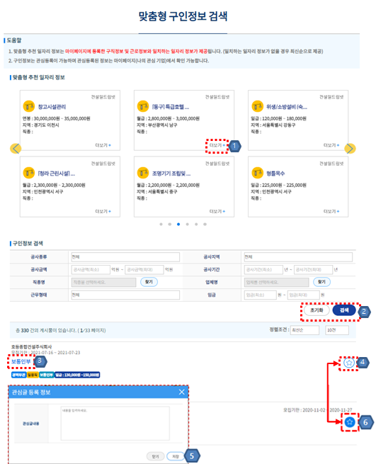 ○ 화면 위치 : 일자리정보 > 맞춤형 구인정보 검색