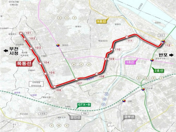 오늘은 목동선에 대해서 알아보자. 양천구는 서울에서 대표적인 교통소외지역 이다. 현재 지하철 3개 노선, 총 8개 지하철역이 있다. 2019년 서울시 자료에 따르면 서울 424개 동 중 전철역이 3개 이상 있는 동은 103개(24%)다. 서초구는 전체 18개 중 12개 동(67%)에, 강남구는 전체 22개 가운데 14개 동(64%)에 역이 3개 이상 있다. 이를 해결하기 위한 서울 경전철 목동선(서울輕電鐵木洞線)은 서울특별시 양천구 신월역에서 영등포구 당산역을 잇는 서울 경전철 노선이다.