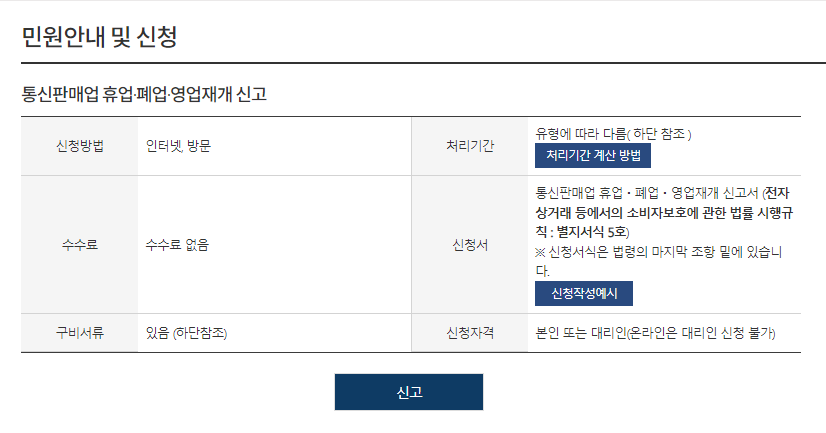 통신판매업 휴업 폐업 영업재개 신고 | 민원안내 및 신청 | 민원24 | 정부24 (gov.kr)